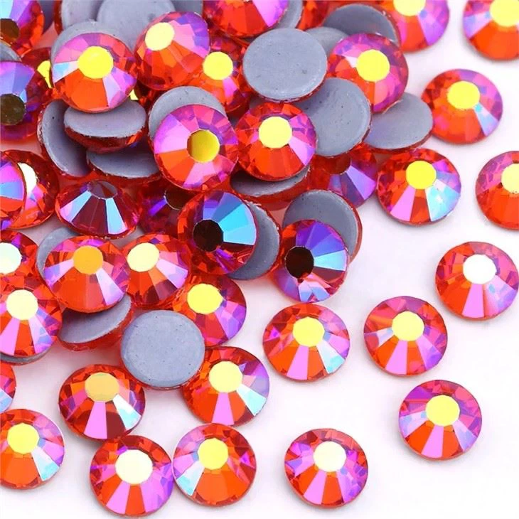 AAA качество Червен кристал AB кристали стъкло Hot Fix кристали за облекло Декорация Облекло Плосък гръб Блясък Iron on Gem